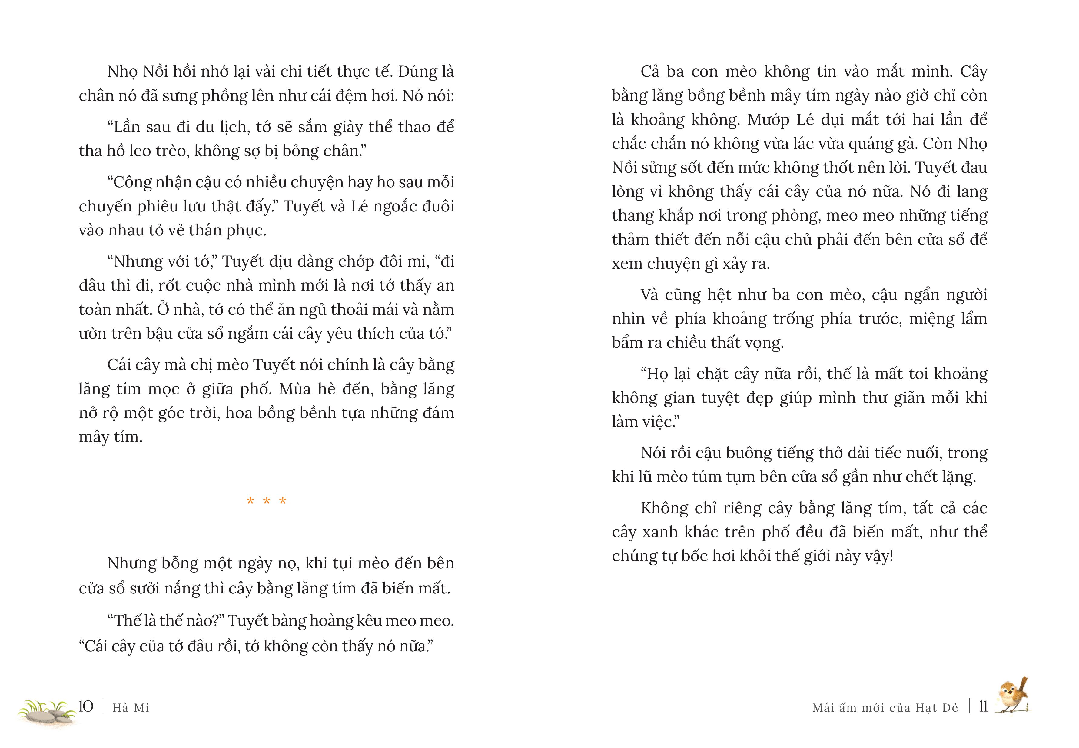 Cái cây, cũng là ngôi nhà êm ấm từ thuở lọt lòng của sóc đỏ Hạt Dẻ, bị chặt bỏ. Thế là chú lưu lạc trong thế giới con người, gia nhập Hội Tam Thể gồm ba con mèo Nhọ Nồi, Tuyết, Lé.