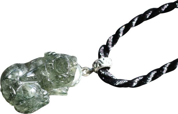 mặt dây chuyền tỳ hưu đá thạch anh tóc xanh tự nhiên DCTATX002