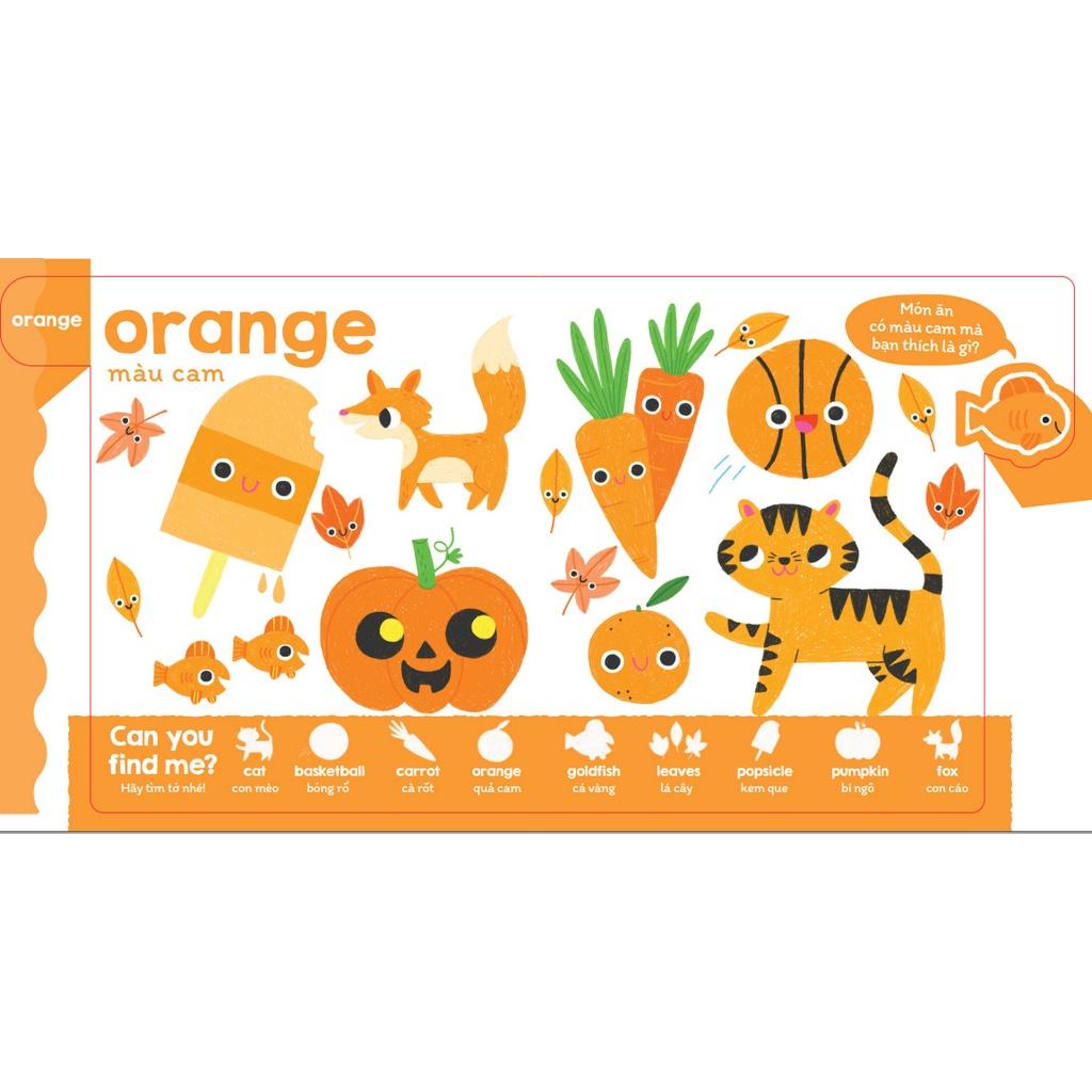 Cuốn sách có chủ đề về màu sắc và các loài động vật, trái cây, rau củ đơn giản trong tiếng anh. Các bé sẽ vừa phát triển khả năng sáng tạo khi học về màu sắc, vừa có thể phát triển tư duy quan sát qua từng trang sách. Màu sắc tương phản, bắt mắt, rất phù hợp để bé phân biệt, nhận biết màu sắc.