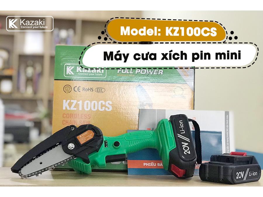 – Máy cưa xích mini dùng pin KAZAKI KZ100CS là dụng cụ làm vườn dùng để cắt tỉa cành cây
