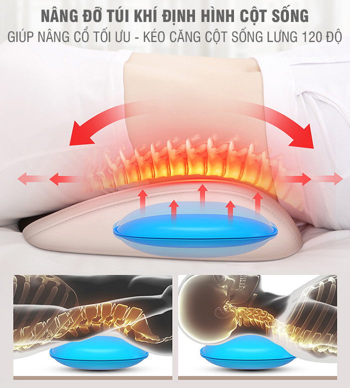 Bơm túi khí giúp nâng đỡ cột sống, áp cổ khi mát xa
