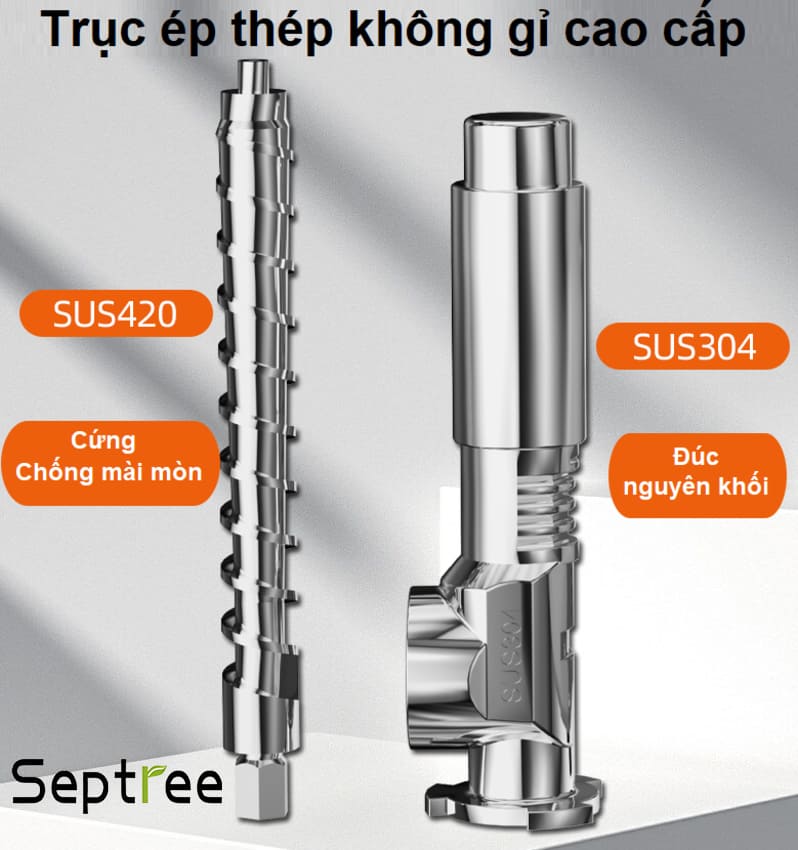 - Mô tơ khỏe hoạt động liên tục, bánh răng truyền lực bằng thép cao cấp chuyên dùng làm nhíp ô tô - Trục ép thiết kế dạng cài, tháo lắp nhanh chóng, trục ép bằng Inox 420 dạng xoắn tháp ép nhanh hơn, kiệt dầu hơn