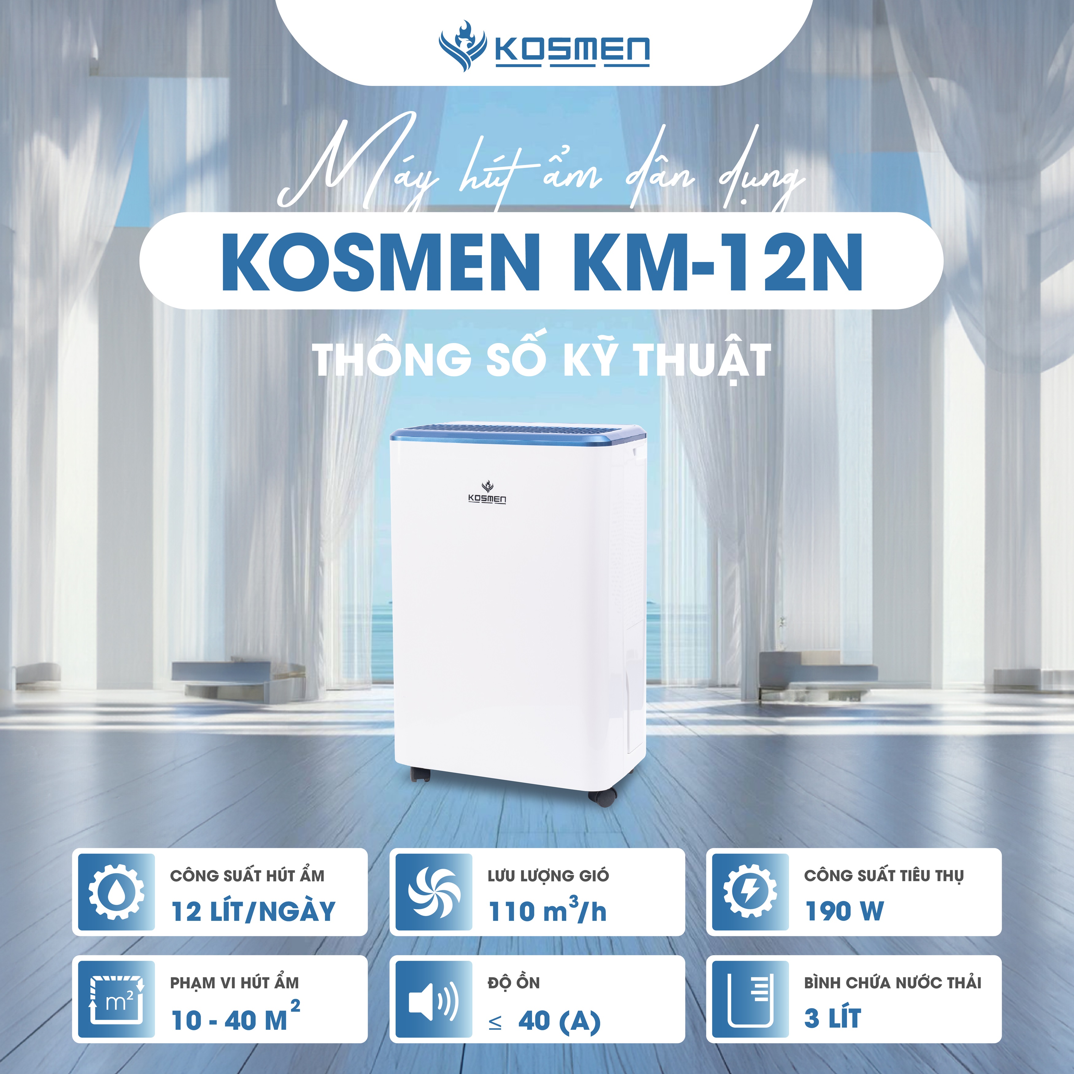 Máy hút ẩm lọc không khí Kosmen KM-12N là dòng sản phẩm nổi bật được nhiều khách hàng ưa chuộng bởi tính hữu dụng và độ bền bỉ, ứng dụng tốt trong cả không gian