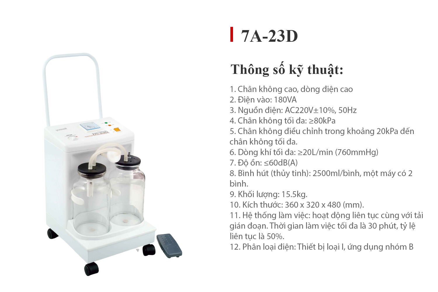 Hướng dẫn sử dụng máy hút dịch hai bình Yuwell 7A-23D.