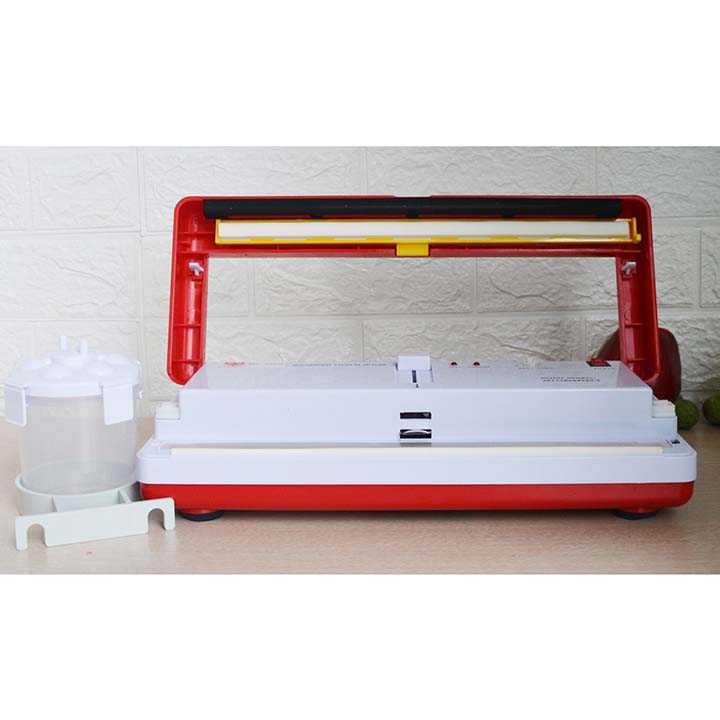 Máy hút chân không phù hợp với hộ gia đình, cửa hàng cửa hiệu kinh doanh nhỏ Thông số kĩ thuật - Trọng lượng máy 1.2kg - Kích thươc máy 37*13*5.5cm - Có thể dập
