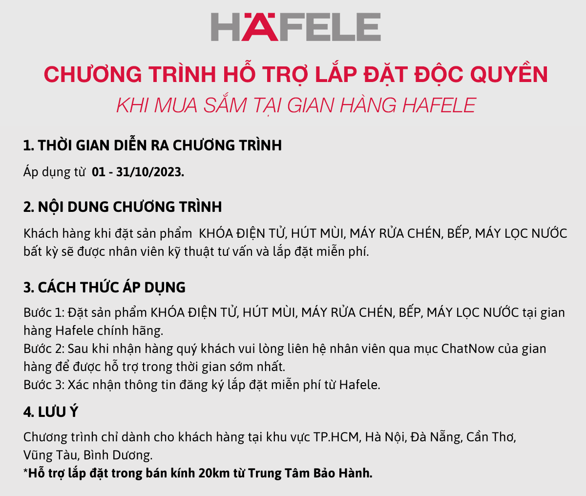 Máy Hút Mùi Âm Tủ HAFELE HH-TG90E (90cm) - 539.81.075 được lắp ráp trên dây chuyền công nghệ hiện đại. Với kiểu dáng sang trọng cùng nhiều tính năng, công suất hút mạnh, độ ồn nhỏ, đem lại không gian thoáng đãng cho căn bếp nhà bạn.   TÍNH NĂNG SẢN PHẨM Hệ thống điều khiển nút nhấn điện tử Máy hút mùi được trang bị những phím điều khiển công suất, chức năng bằng phím nhấn. Các phím bật nguồn, bật đèn và các phím điều chỉnh công suất, mỗi phím sẽ có một nút nhấn nổi để bạn dễ dàng điều khiển. Vì đây là dạng nhấn phím nổi nên bạn hoàn toàn không lo sợ dấu vân tay mờ hay tay ướt sẽ khó điều chỉnh máy. Lưới lọc mỡ và ngăn ẩm bằng hợp kim nhôm nhiều lớp dễ dàng tháo lắp và vệ sinh Bộ lọc lưới nhôm giúp khử sạch mùi dầu mỡ, khói bụi từ thức ăn. Lưới lọc có độ bền cao, có thể vệ sinh định kỳ, sử dụng được nhiều lần và có thể tháo rời. Chế độ hút và khử mùi trực tiếp bằng than hoạt tính hoặc thoát ống ra ngoài Chế độ khử mùi bằng cách hút trực tiếp qua ống xả và qua bộ lọc tuần hoàn. Với các tính năng này, không khí sẽ được hút vào bộ lọc để trung hòa mùi hôi và loại bỏ dầu mỡ, mang lại bầu không khí trong lành cho gian bếp. THÔNG SỐ KỸ THUẬT 03 tốc độ điều chỉnh Phụ kiện đi kèm: than hoạt tính Động cơ Turbin đôi, công suất động cơ 265W 02 Đèn LED chiếu sáng x 2,5W Đường kính ống thoát 150 mm Hệ thống hút xả: tuần hoàn hoặc thông gió Công suất hút tối đa: 950 m3/h Độ ồn: 50-66 dB dB Chiếu sáng: đèn LED 2 x 2.5 W Công suất tiêu thụ: 265 W Hiệu điện thế, Tần số 220 -240V, 50Hz Kích thước sản phẩm: 898R x 319C x 300-455D mm Xuất xứ thương hiệu: Đức Nơi sản xuất: Ý THÔNG TIN THƯƠNG HIỆU Được thành lập từ năm 1923 tại thành phố Nagold Đức, với thành công trong lĩnh vực phụ kiện nội thất, phụ kiện công trình cao cấp và hệ thống khóa điện tử tiên tiến. HAFELE ngày nay là một trong những công ty cung cấp công nghệ phụ kiện lớn nhất trên thế giới với 37 công ty con và dòng sản phẩm đa dạng hiện diện tại hơn 150 quốc gia. Nền tảng với hơn 90 năm kinh nghiệm và không ngừng đổi mới, sáng tạo đã giúp HAFELE phát triển ngày càng mạnh mẽ và trở thành 1 doanh nghiệp hàng đầu mang lại các giải pháp tối ưu cho nhà ở và công trình.