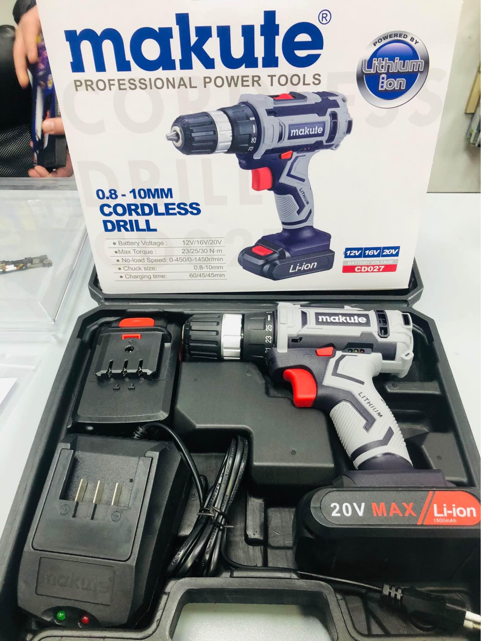 Ưu điểm nổi bật của máy khoan pin 20V Makute CD029 Makute CD029 đi kèm 2 pin sạc Li-ion 20V 1.5Ah, bộ sạc và hộp đựng chắc chắn. Trọn bộ sản phẩm Máy khoan pin 20V Makute