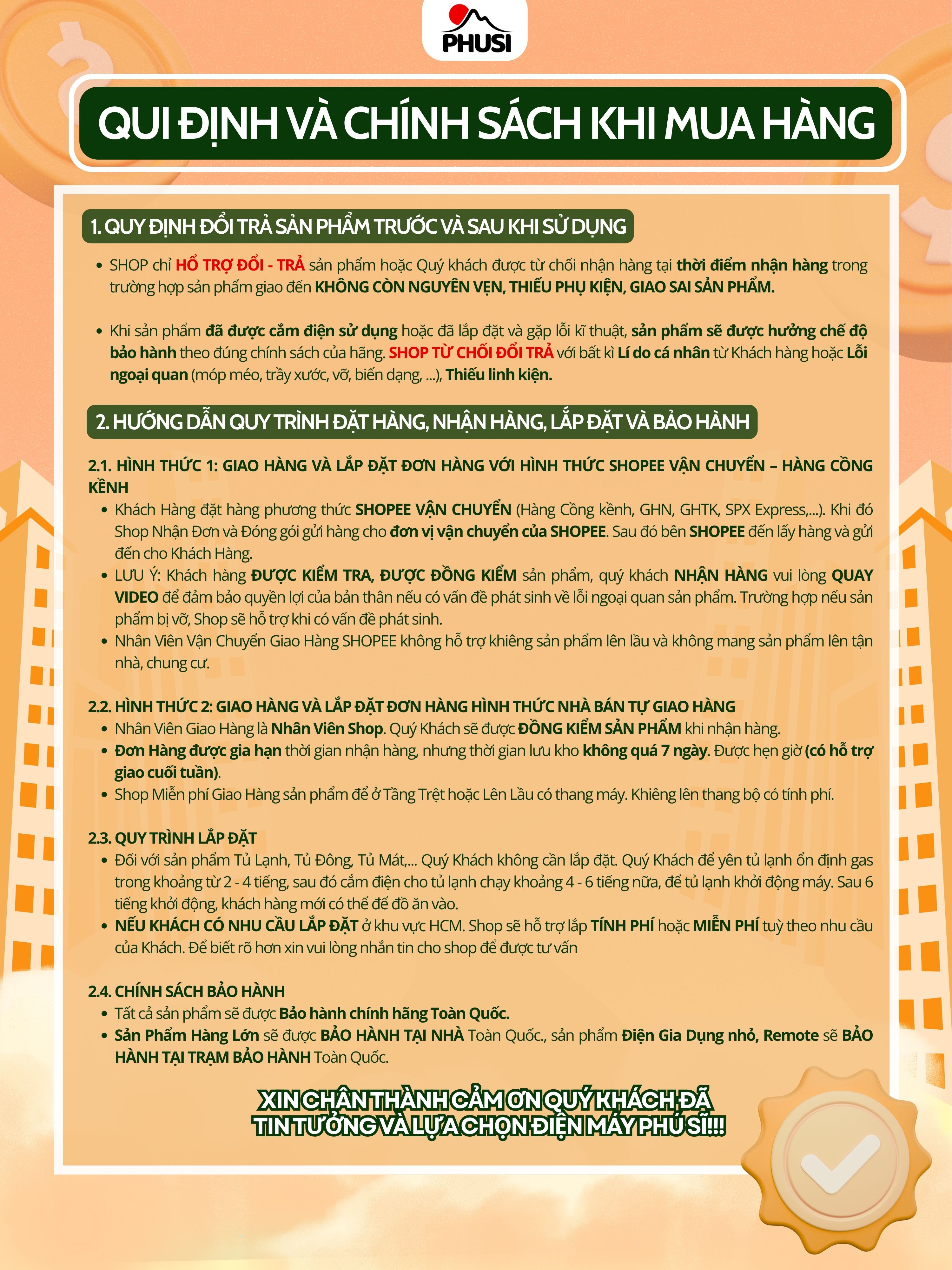 Khu vực ngoại thành HCM có giao hàng tính phí, vui lòng liên hệ trước. * Hỗ trợ công ráp cơ bản sản phẩm mới, vật tư tính phí theo bảng giá qui định. *