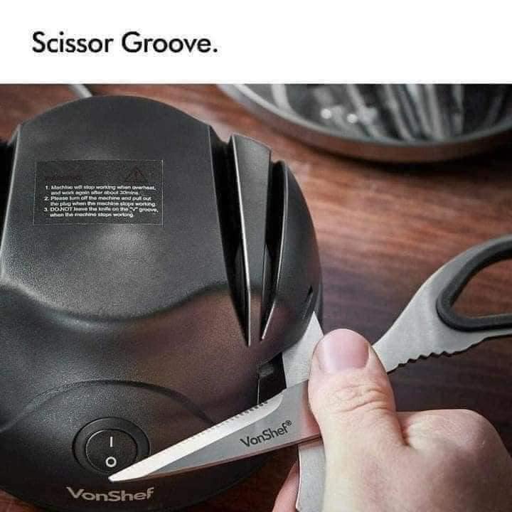 Không chỉ để giữ cho dao luôn trong tình trạng đầu nhọn, máy mài đa năng này còn có rãnh mài cắt kéo cộng với cổng mài tuốc nơ vít.