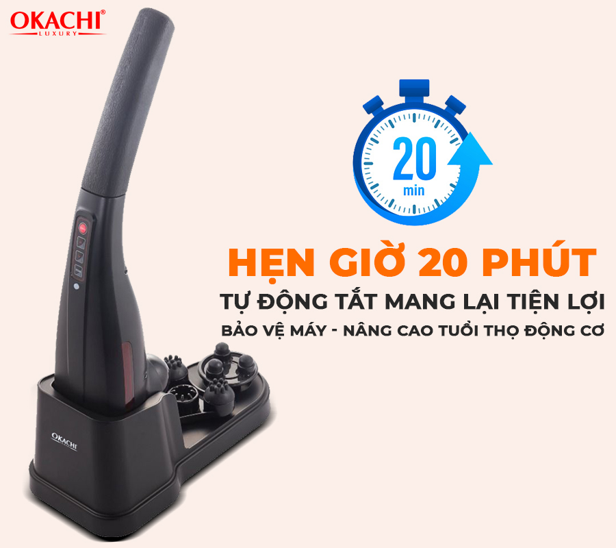 Máy massage cầm tay hồng ngoại OKACHI LUXURY JP-M610 (màu đen) có thời gian mat xa tự động tắt sau 20 phút. Nhằm ngăn chặn viêc sử dụng quá mức, đồng thời bảo vệ và nâng cao tuổi thọ cho động cơ.