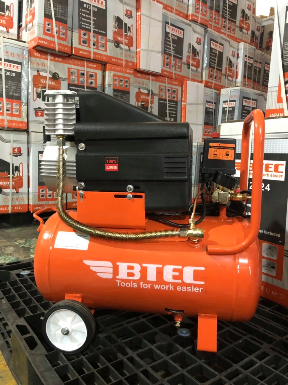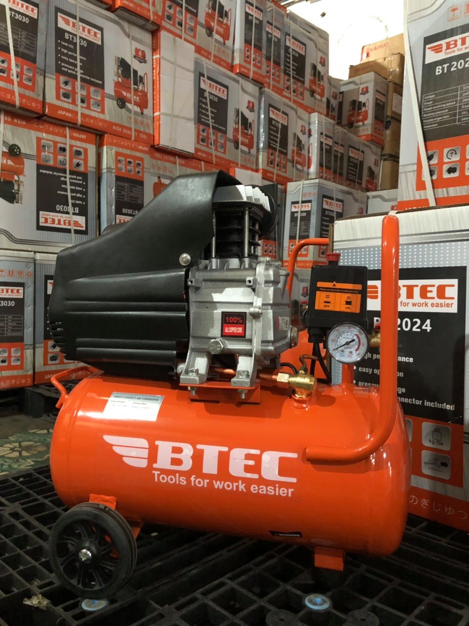 +Với dung tích 24 lít, BTEC BT-2024 sẽ đáp ứng được nhu cầu dùng khí nén của máy phun sơn cầm tay, máy bắn ốc vít. Máy nén khí thiết kế đầu liền giúp khí nén không bị thất thoát ra ngoài. Khí nén có áp suất khỏe giúp làm việc hiệu quả hơn.