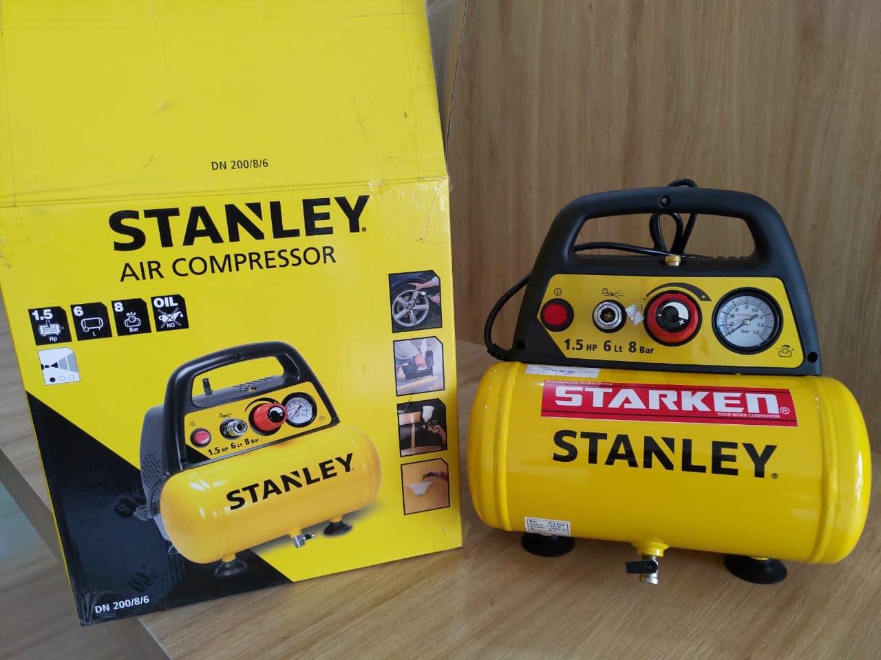 Stanley DN200/8/6 có động cơ 1.5HP, áp suất cực đại 8 Bar giúp cung cấp khí nén hiệu quả cho các máy móc dùng khí nén.