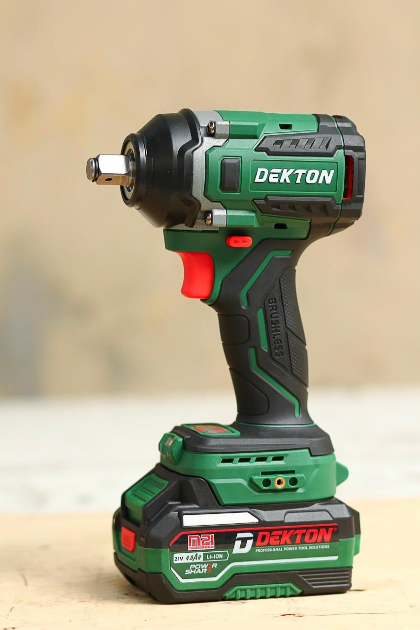 sử dụng pin 21V 4Ah có thời gian sạc nhanh và thời lượng pin lâuPin có thiết kế chung với các sản phẩm khác của Dekton, giúp bạn tiết kiệm chi phí khi sử dụng nhiều máy khác nhau Pin còn có đèn LED hiển thị dung lượng pin, giúp bạn kiểm soát được thời gian làm việc.