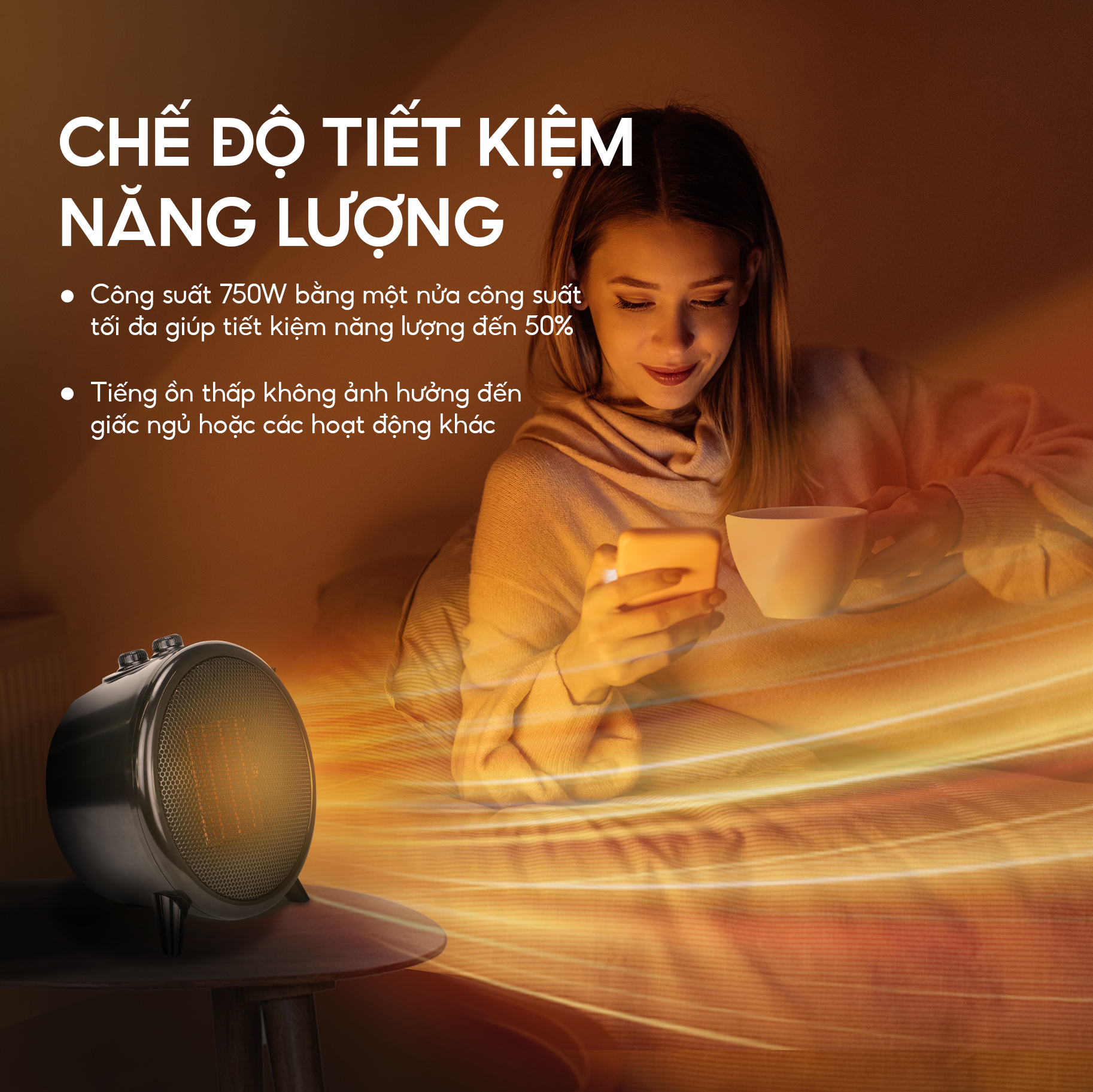 Đặc biệt, máy sưởi LBL0275 có chế độ tiết kiệm năng lượng với công suất 750W, giúp bạn tiết kiệm đến 50% năng lượng điện.