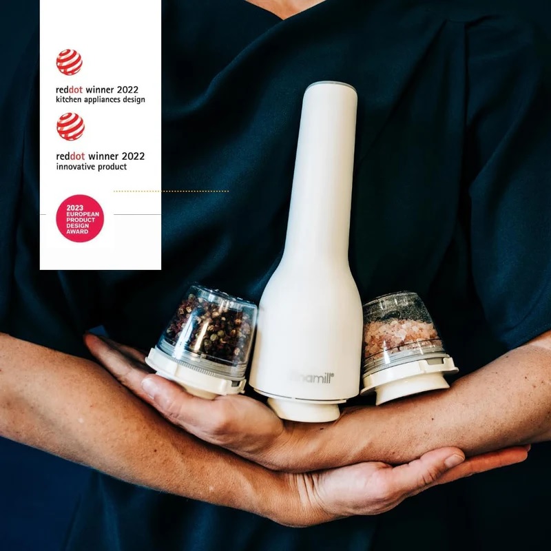 FinaMill đã giành giải thưởng danh giá R,E.D D.O-T Design Award nhờ thiết kế đột phá, với chất liệu an toàn, không chứa BPA, và đáp ứng tiêu chuẩn FDA.