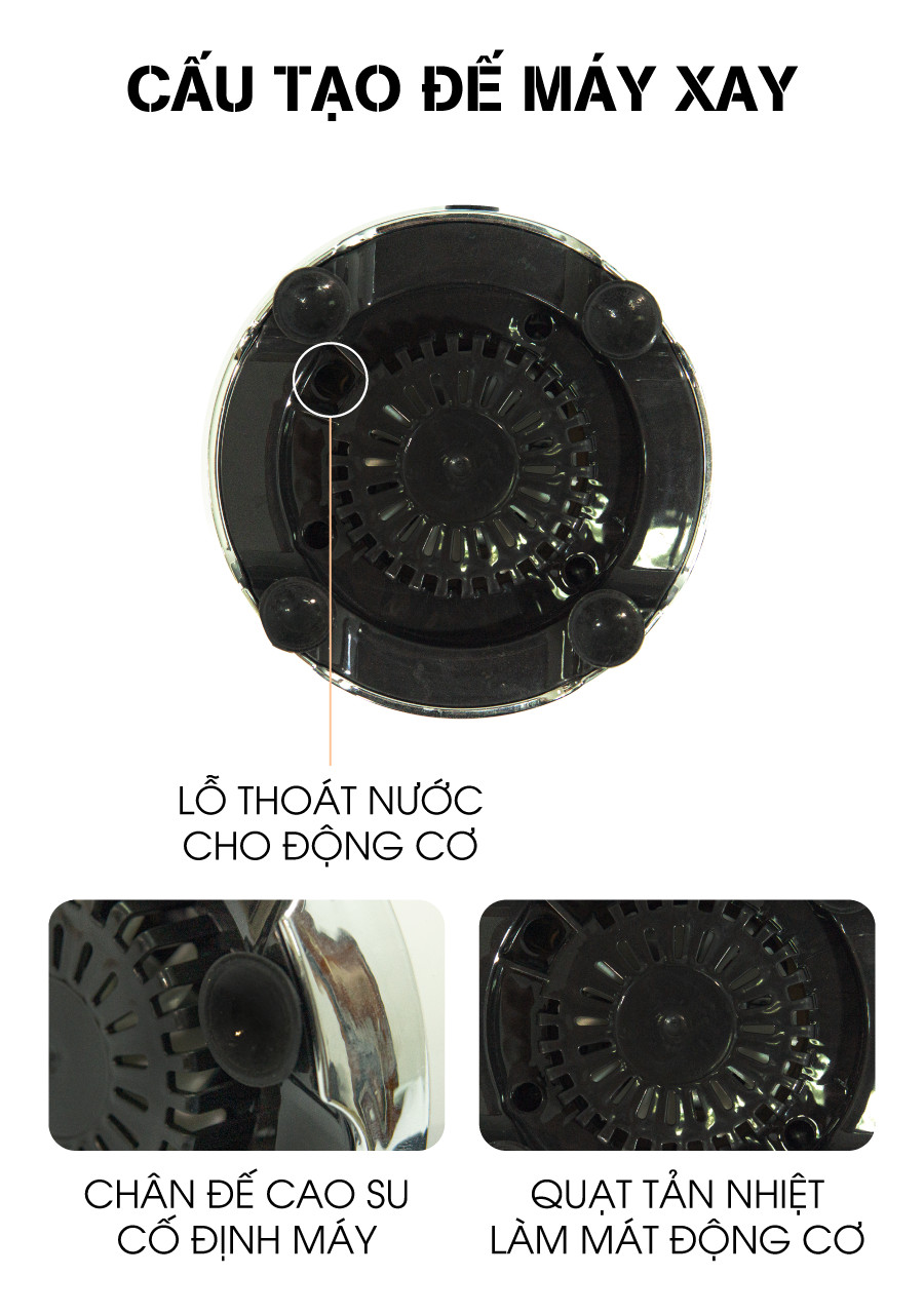 Chân đế chống trượt an toàn Đặc biệt, động cơ của máy xay có công suất hoạt động lên đến 300W có thể dễ dàng xay nhuyễn các loại thực phẩm nhanh và giúp xay nhiều loại thực phẩm từ cứng tới mềm một cách nhanh chóng giúp bạn tiết kiệm được nhiều thời gian hơn. Sản phẩm được thiết kế đa chức năng, dễ dàng sử dụng với thiết kế chân đế bằng cao su chống trượt tuyệt đối an toàn cho người sử dụng.