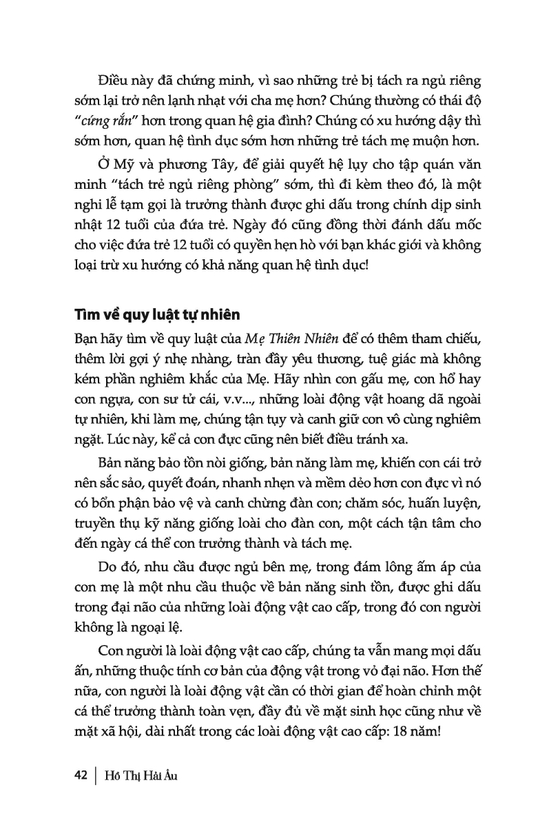 “ Tình mẹ không phải là sự chiếm hữu vĩnh hằng đối với con trẻ mà là một sự rút lui hợp lí. Nhiệm vụ đầu tiên của tình mẹ chính là thân mật với