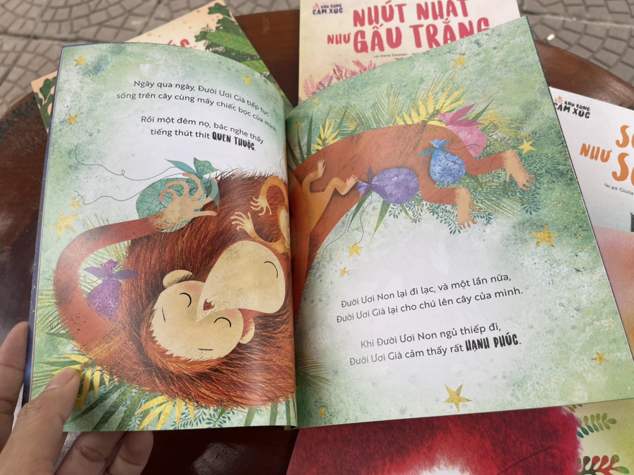 - Ích kỉ như đười ươi: Đười Ươi Già lúc nào cũng giữ khư khư những chiếc bọc của mình, không để bất cứ ai lại gần chúng. Thế rồi, nhờ một chú đười ươi non, bác ta nhận ra sự chia sẻ quý giá đến nhường nào. Câu chuyện này sẽ giúp các bạn nhỏ hiểu về sức mạnh của sự sẻ chia và giá trị của kỉ niệm.