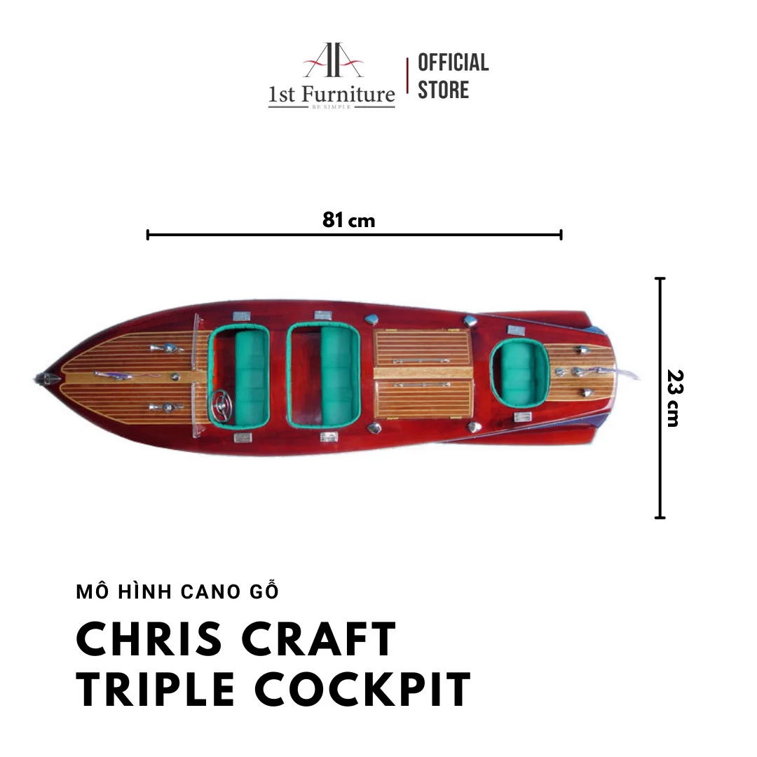 Thông tin sản phẩm: Mô hình cano CHRIS CRAFT RUNABOUT LIMITED có kích thước là 0.07m3 Mô hình cano CHRIS CRAFT RUNABOUT LIMITED có kích thước hoàn chỉnh là: Cd: 82cm Crg: 23cm Cc: 23cm
