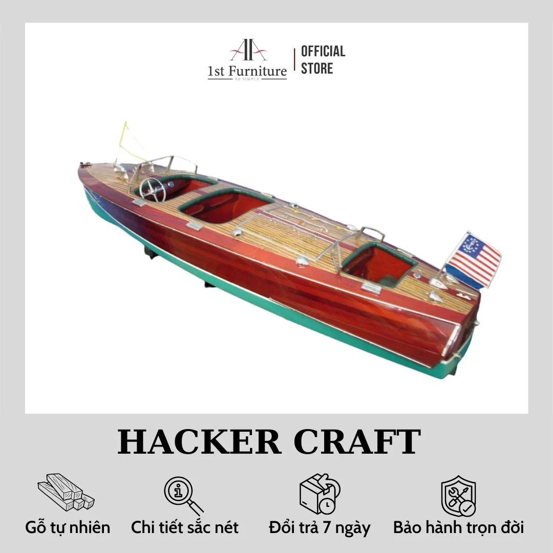 Mô hình tàu cano gỗ thuyền đua tốc độ H Craft trang trí được làm thủ công bằng tay và quy trình sản xuất mô hình thuyền gỗ trang trí này tương tự kỹ thuật đóng tàu thật, với từng nan gỗ nhỏ được ghép lên trên khung xương, mặt sàn được ghép bằng từng thanh gỗ xẻ nhỏ theo tỉ lệ. Trên mặt sàn hiển thị đầy đủ các chi tiết như: Xuồng cứu sinh, nắp hầm, tời, dây dù, vô lăng, lan can, cầu thang, … theo bản vẽ thiết kế của tàu thật.