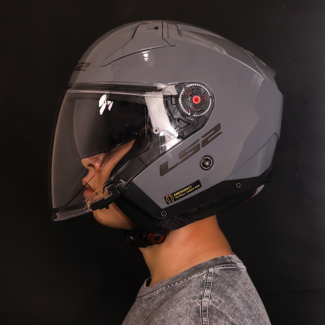 Mũ LS2 OF603 có khả năng nâng cấp lên 2 kính, kính phụ màu tối bên trong giúp tiện lợi khi di chuyển trong điều kiện dư sáng, chói nắng ban ngày. Thao tác đóng mở kính phụ cũng cực kì dễ dàng, nhanh chóng với nút gạt nhỏ như mũ fullface, rất thuận tiện cho người đội