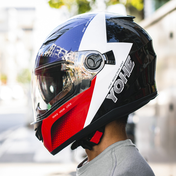 Mũ bảo hiểm Fullface Yohe 970 Hai Lớp Kính có thiết kế năng động, hiện đại, tương đối nhỏ gọn. Đặc biệt màu sắc của mũ bảo hiểm 2 lớp kính fullface Yohe 970 đa dạng, cách phối màu sơn mạnh mẽ, đầy cá tính vừa đảm bảo an toàn vừa mang lại vẻ ngoài chất lừ cho người đội.