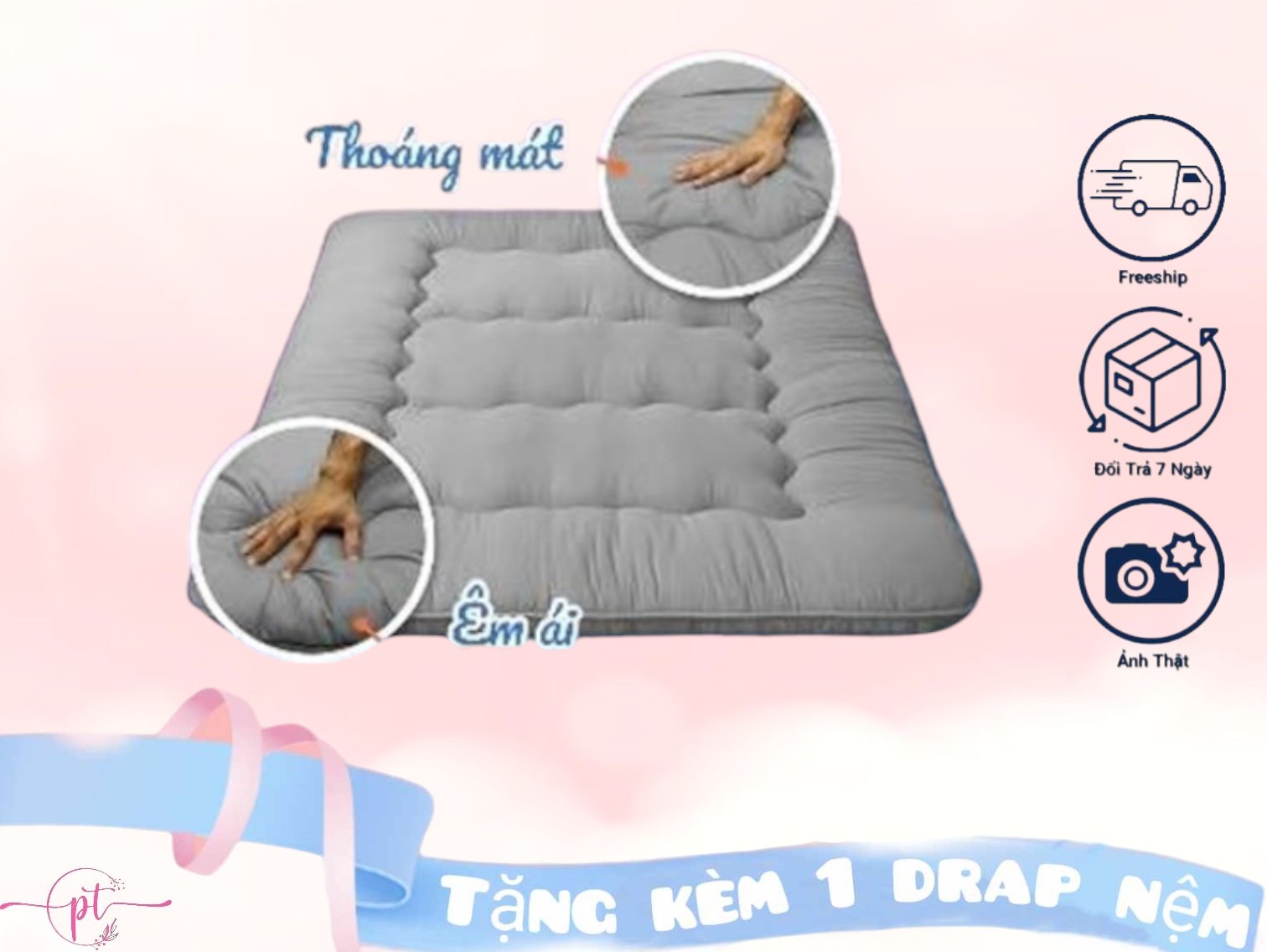 Dùng như tấm làm mềm nệm để bảo vệ tấm nệm hoặc trải sàn, mang theo làm nệm ngủ văn phòng đều được CHẤT LIỆU ---------------------------- - Lớp ngoài: Sử dụng vải Cotton Poly thông