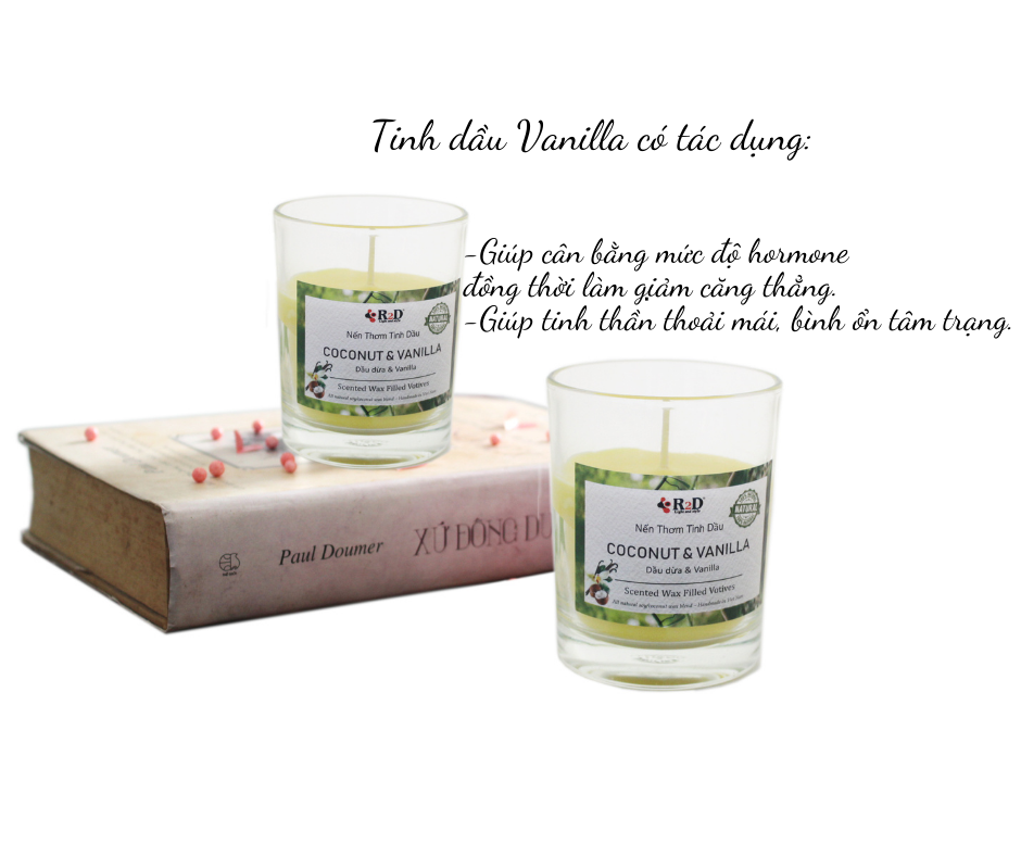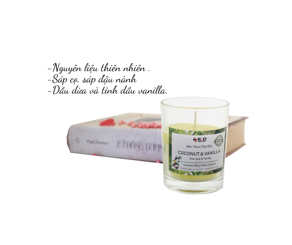 Nến Thơm, Tinh Dầu Coconut-Vanilla, Nến Thơm Phòng, [Ly 300g], Đến Từ Shop R2D, Làm Từ Thành Phần Tự Nhiên, Lành Tính.