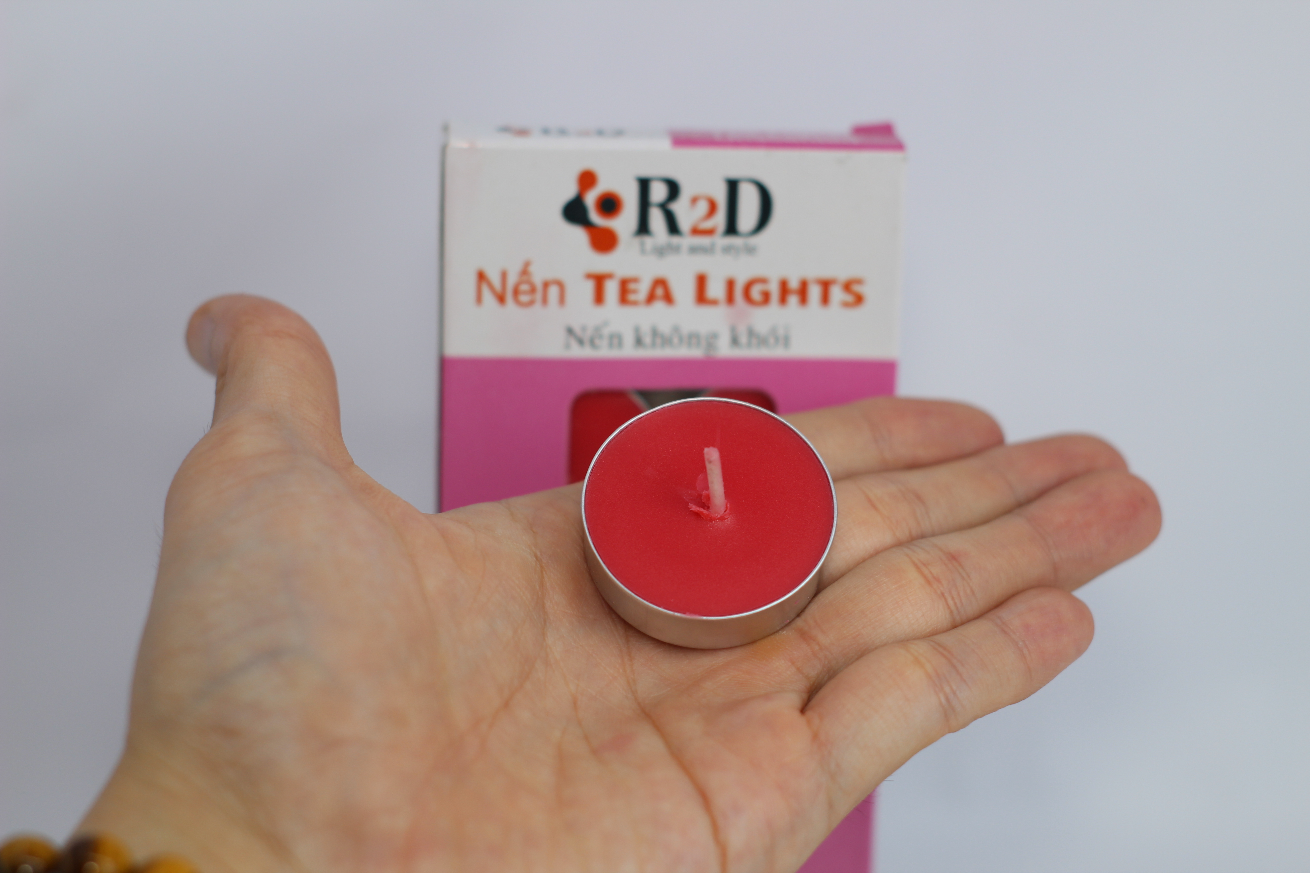 Nến Không Khói Đỏ, Tealight Đỏ, [Vỉ 10 Viên], Chính Hãng Từ Thương Hiệu R2D, Thành Phần Tự Nhiên, Lành Tính. - Nến Không Khói, Đỏ dùng thắp sáng, trang trí, trang trí nội thất, sân vườn, tiệc cưới. Là sản phẩm cần thiết để dùng với đèn xông tinh dầu. - Nến không khói khi đốt dễ chịu, thoải mái, không khói, không mùi, cháy sạch không tàn, không bị tắt trong lúc cháy. - Sử dụng tốt cho những người dị ứng với mùi hương hoặc kết hợp với đèn xông tinh dầu để tạo mùi thơm, khử sạch mùi hôi, đuổi côn trùng, làm không khí trong lành. Thành phần: Dầu cọ, sáp dừa organic. Định lượng: 100 g (7.5x19x1.5). Thời gian đốt: 4 giờ trong điều kiện phù hợp. - Kiểu dáng nến đẹp mắt, ấn tượng tạo sự sinh động, tinh tế cho không gian của bạn, có thể dùng cho gian phòng, gia đình, nhà hàng, khách sạn… - Nến không khói được làm hoàn toàn từ tinh chất tự nhiên kết hợp với sáp cọ organic cao cấp. HƯỚNG DẪN SỬ DỤNG NẾN - Đốt trực tiếp hoặc sử dụng chung với đèn xông tinh dầu. - Có thể tái sử dụng nhiều lần . - Bảo quản nơi khô ráo thoáng mát, tránh nhiệt độ cao.