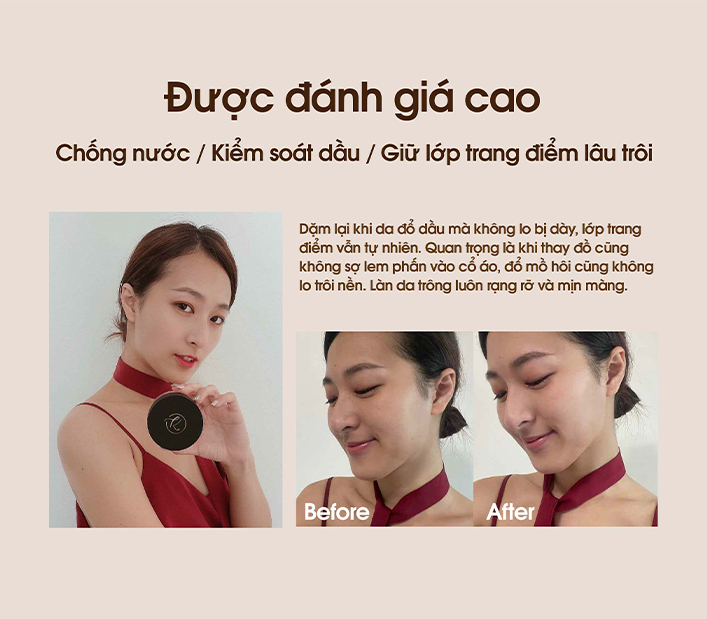 - Khả năng dàn trải tốt, che phủ hoàn hảo các khuyết điểm, nếp nhăn, lỗ chân lông cho lớp trang điểm mỏng mịn, không bị vón cục. - Có thể hiệu chỉnh lớp trang