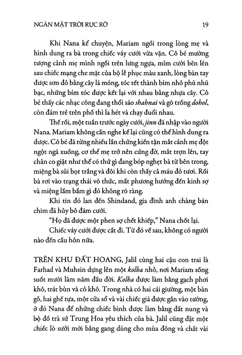 Bốn thập kỷ biến động và ly tán ở Afghanistan, một lối dẫn dắt chân thực bậc thầy, câu chuyện về những số phận bị vùi dập nhưng đầy ám ảnh. Với Ngàn mặt trời rực rỡ, Khaled Hossini đã chứng minh thành công của Người đua diều không phải điều ngẫu nhiên.