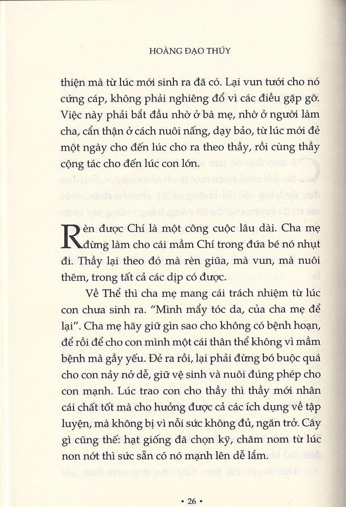 Sẽ còn rất nhiều điều hay và mới mẻ nữa trong tư tưởng, quan niệm và kinh nghiệm của cụ Hoàng Đạo Thúy nhưng tôi xin kết thúc bài giới thiệu ở đây bằng cách dẫn lại những lời tâm sự nhẹ nhàng mà cháy bỏng của tác giả về nghề thầy. Chúng ta hãy cùng đọc đi đọc lại và suy ngẫm: