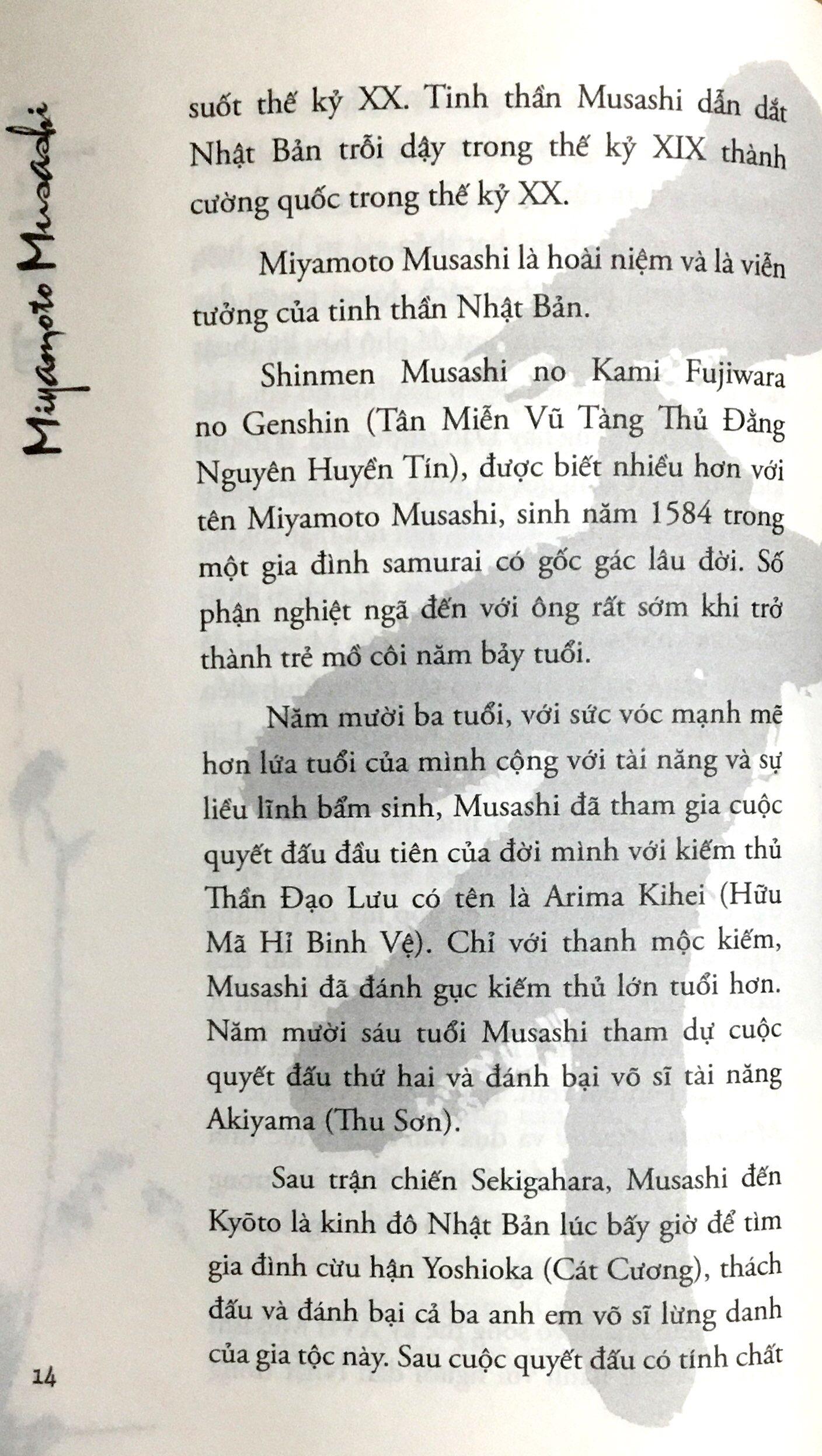 Miyamoto Musashi (1584 – 1645) được xưng tụng là Thánh Kiếm của Nhật Bản thời tiền Mạc Phủ Tokugawa, sáng lập ra môn phái Niten Ichi Ryu (Nhị thiên Nhất lưu). Sau khi sống sót qua trận tử địa Sekigahara giữa Đông Quân và Tây Quân, Miyamoto Musashi đã lang bạt khắp nơi, tự rèn luyện mình để trở thành một kiếm sĩ nổi danh và thành công nhất Nhật Bản với chiến tích chưa từng thất bại trước bất cứ đối thủ nào. Trong những năm tháng cuối đời, Musashi đã viết binh pháp thư Ngũ