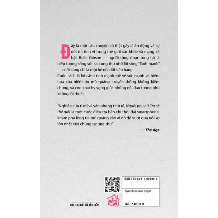 NGƯỜI PHỤ NỮ LỪA CẢ THẾ GIỚI (The Woman Who Fooled the World: Belle Gibson’s Cancer Con, and the Darkness at the Heart of the Wellness Industry) do hai nhà báo Beau Donelly và Nick Toscano viết, là một tác phẩm phi hư cấu xuất sắc phản ánh sự lừa đảo tinh vi trong thế giới sức khỏe và truyền thông.