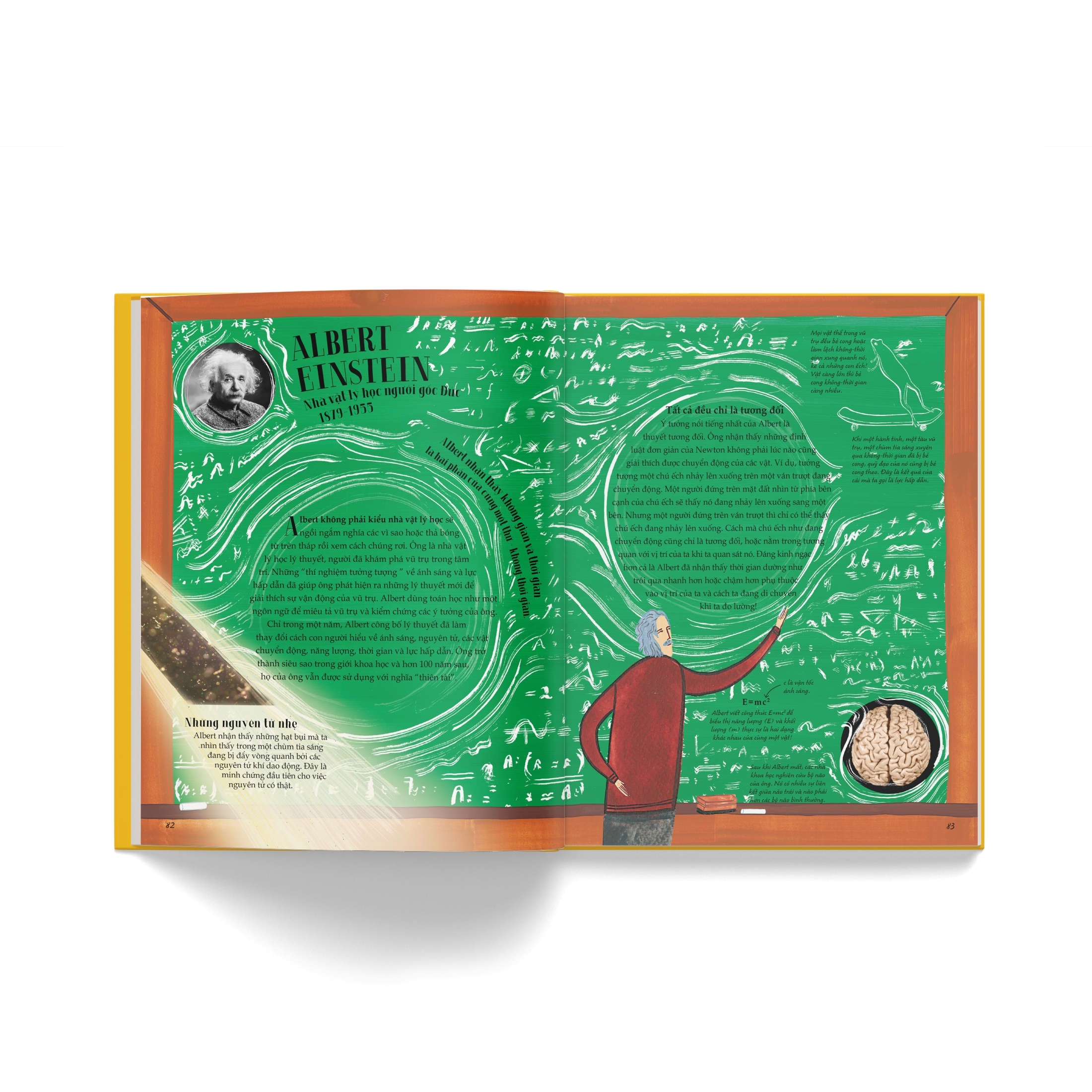 Nhà khoa học - Những câu chuyện truyền cảm hứng từ những nhà khoa học lỗi lạc nhất thế giới kể về cuộc đời của hơn 50 nhà khoa học kiệt xuất, những người đã thay đổi thế giới bằng bộ óc tò mò và khát khao vươn đến tri thức của mình. Sách được chia thành 4 chương tương đương với 4 lĩnh vực: Sinh học kiệt xuất, Hóa học phi thường, Vật lý tuyệt vời, Trái đất và vũ trụ kỳ thú. Chúng ta sẽ gặp gỡ và tìm hiểu về cuộc đời của Marie Curie, Alexandre Yersin, Galileo Galilei, Albert Einstein, Stephen Hawking cùng nhiều nhà khoa học nổi tiếng khác.