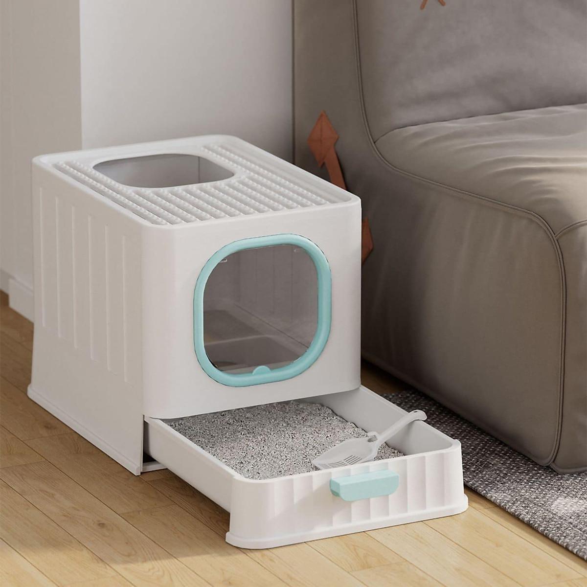 ✨Nhà Vệ Sinh Vuông Cao Cấp Cho Mèo Có Ngăn Kéo Khép Kín Chống Văng Cát Kèm Xẻng