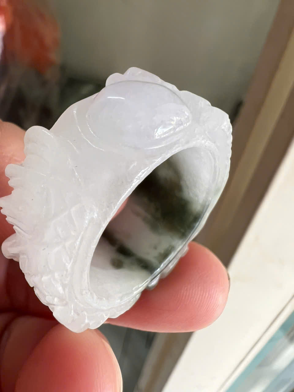 ✨Nhẫn Rồng Nam Ni 21mm Cao 13mm Dầy 6mm Đá Cẩm Thạch màu màu trắng sáng bóng điểm xíu xanh đẹp ạ