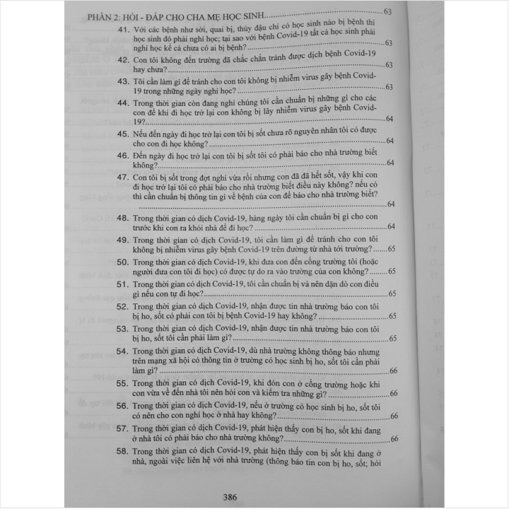 Phần II. PHÒNG, CHỐNG DỊCH BỆNH COVID-19 TRONG CÁC CƠ SỞ GIÁO DỤC (100 câu hỏi - đáp về phòng, chống dịch bệnh Covid-19 trong các cơ sở giáo dục; Một số quy định cần biết để phòng chống dịch bệnh Covid-19 trong trường học)