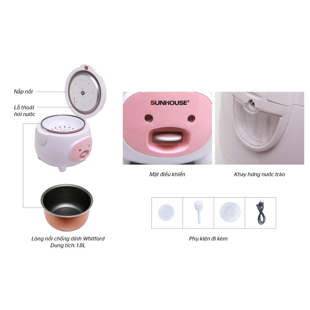 Nồi cơm điện 1.8L SUNHOUSE SHD8607W được trang bị một mâm nhiệt lớn cùng công suất nồi 700W giúp nhiệt tỏa đều làm cơm chín đều, mềm và ngon hơn.