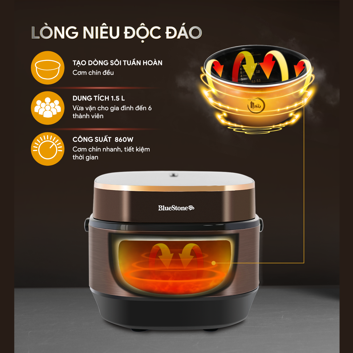 ✨Nồi Cơm Điện Tử Lòng Niêu BlueStone RCB-5949 1.5 Lít- Hàng chính hãng
