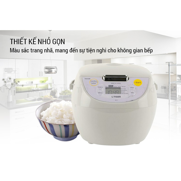 Nồi cơm điện tử Tiger JAX-S18W - Thông số kỹ thuât: Model: JAX-S18W Màu sắc: Be Điện áp: 220V Dung tích: 1.8L Công suất: 918W Kích thước: 28.1×37.2×24.5(cm) Trọng lượng: 3.8kg Sản xuất: Japan - Đặc