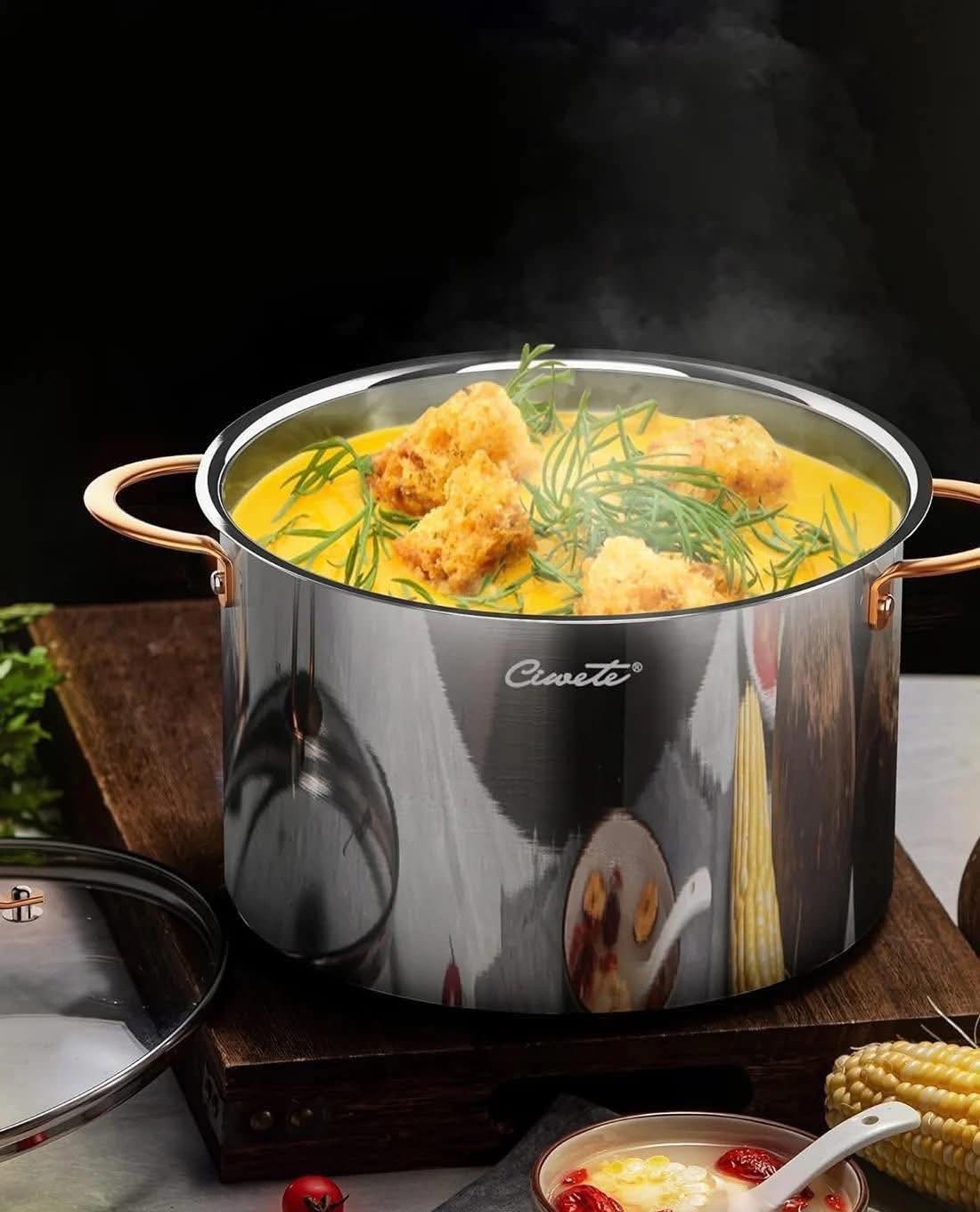 - Thiết kế nồi có thành cao rất thích hợp với các món hầm và kho, luộc mì ống và nấu các loại rau cho gia đình bạn. Với nắp kính cường lực và núm