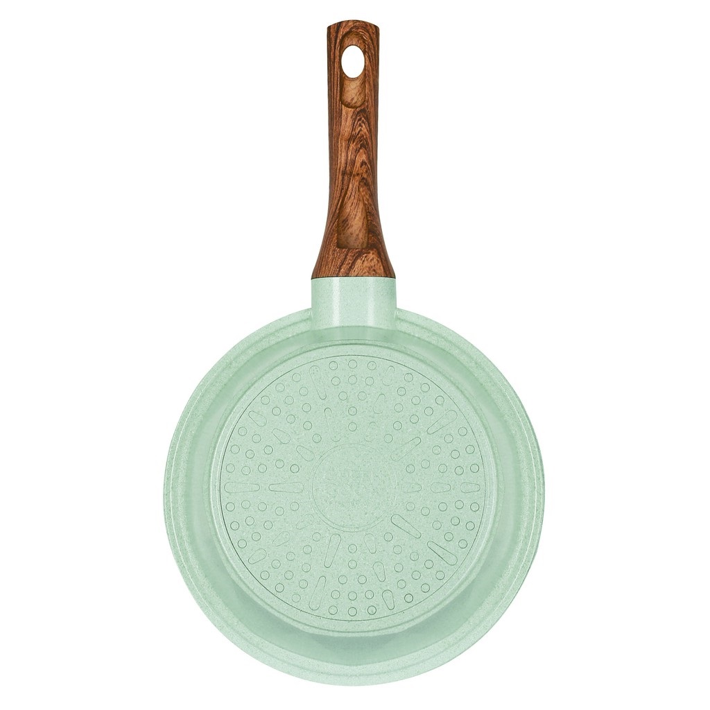 Lòng chảo được dập vân 3D giảm bề mặt tiếp xúc của mặt chảo với thực phẩm, tăng khả năng chống dính tự nhiên. Công nghệ phủ đá color stone coating 5 lớp siêu bền, hạn chế trầy xước, thoải mái nấu ăn hay chùi rửa bằng kim loại.