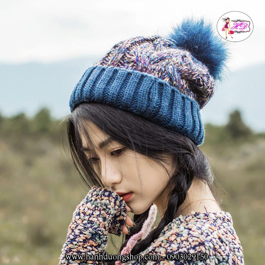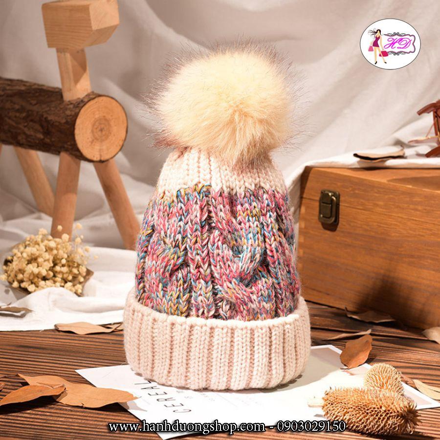 Nón len chụp đầu giữ ấm mùa đông, chất liệu vải len ấm áp bền đẹp, có búi trên đầu thời trang - Hạnh Dương