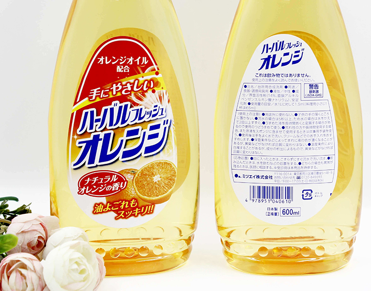 Nước Rửa Chén Diệt Khuẩn Tinh Chất Cam Mitsuei Kobini (600ml) - Thành phần: Chiết xuất từ tinh chất cam tươi kết hợp với chất diệt khuẩn và các hóa phẩm an toàn cho con người.