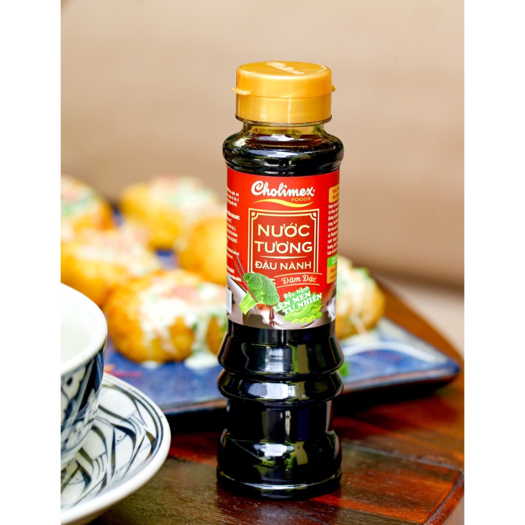 • Nước tương lên men Cholimex được sản xuất theo công nghệ hoàn toàn khép kín từ khâu chọn lựa hạt đậu nành - đảm bảo không bị biến đổi gen đến khâu thành phẩm cuối cùng. Sau khi sàng lọc kĩ lưỡng, hạt đậu nành được lên men tự nhiên để giữ trọn vẹn vị ngon, ngọt vốn có.