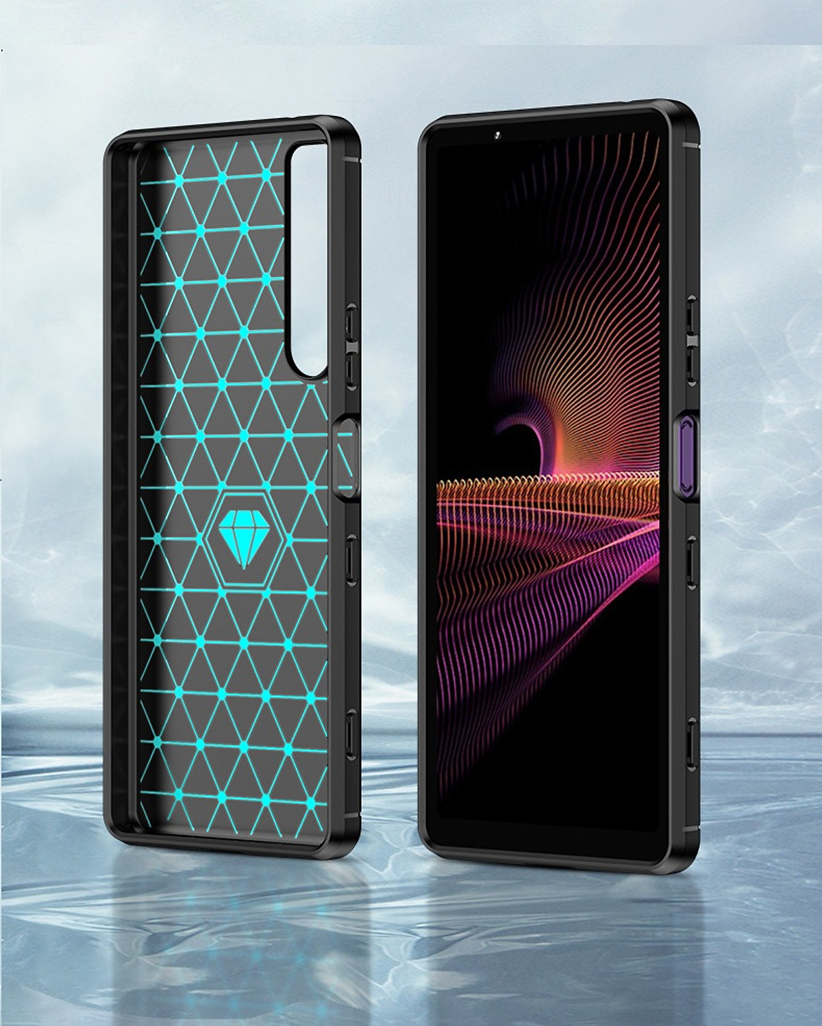 Ốp lưng chống sốc Sony Xperia 1 Vân Sợi Carbon được thiết kế với 2 dải carbon trên dưới tuyệt đẹp, độc đáo, sang trọng Ốp lưng được làm từ chất liệu nhựa mềm TPU