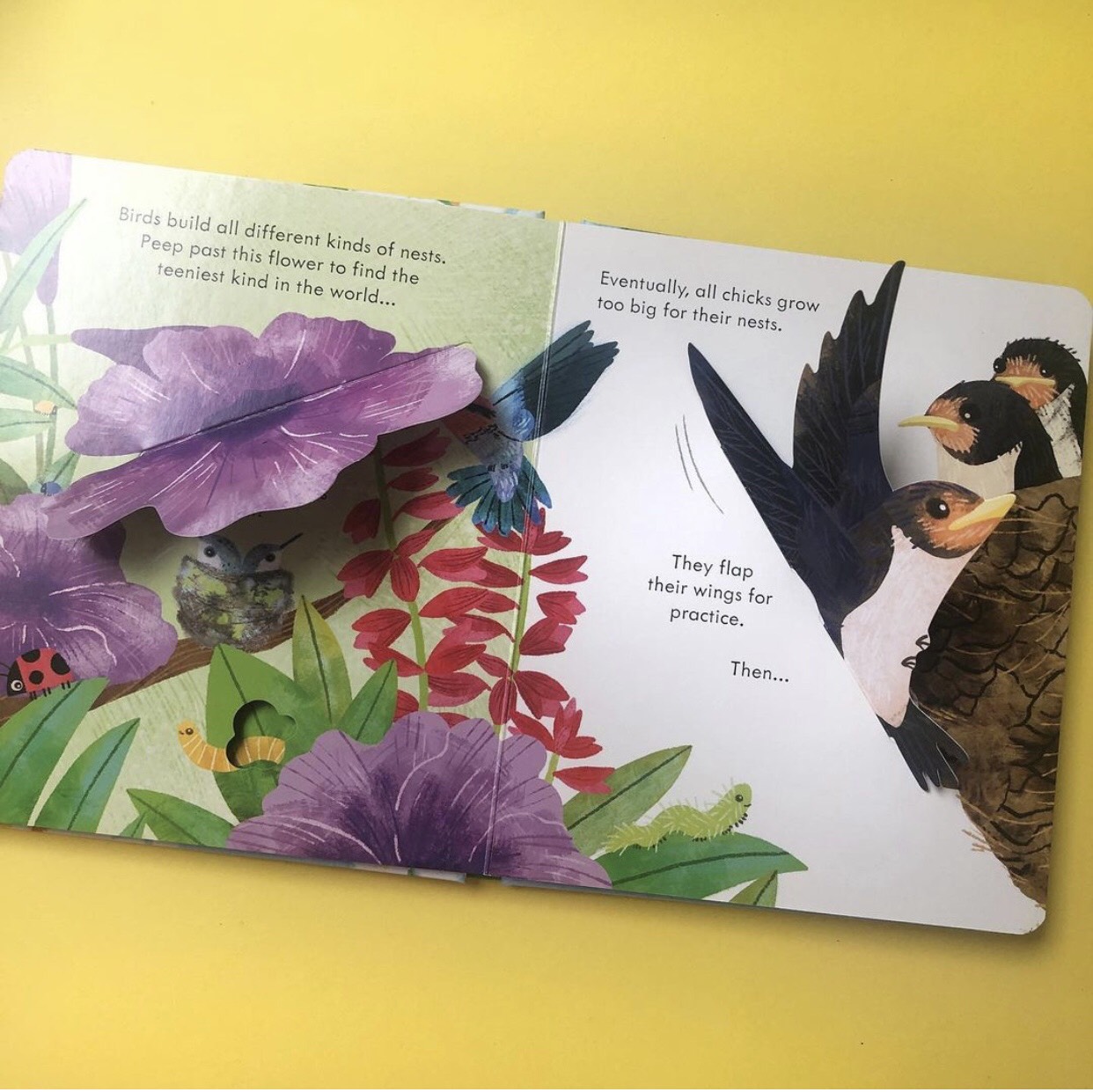 Peep inside a bird's nest to see her precious eggs nestled there. Lift a flap to see them hatch, and find out how a bird takes care of its young. Discover all kinds of different