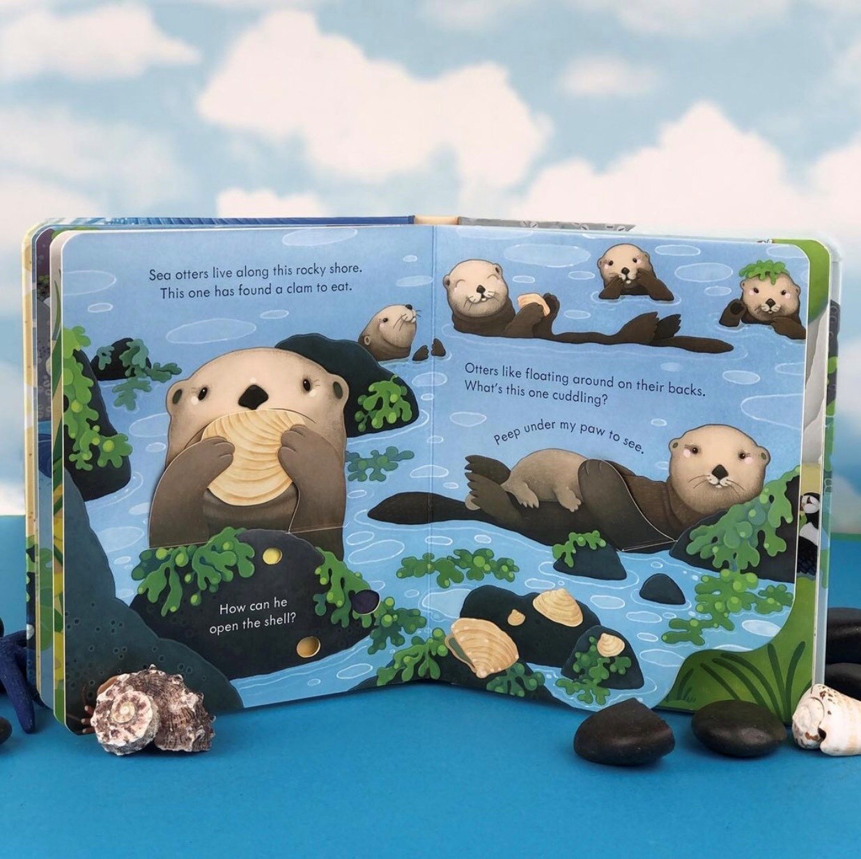 Peep under seaweed and waves and into rock pools to discover all the delights of the seashore in this interactive little book. What does a limpet look like in its shell? What's inside a pelican's bulging beak? What is a sea otter cuddling as it floats on its back? From bugs in the sand dunes to turtles hatching on a moonlit beach, this book explores coastlines from all around the world .