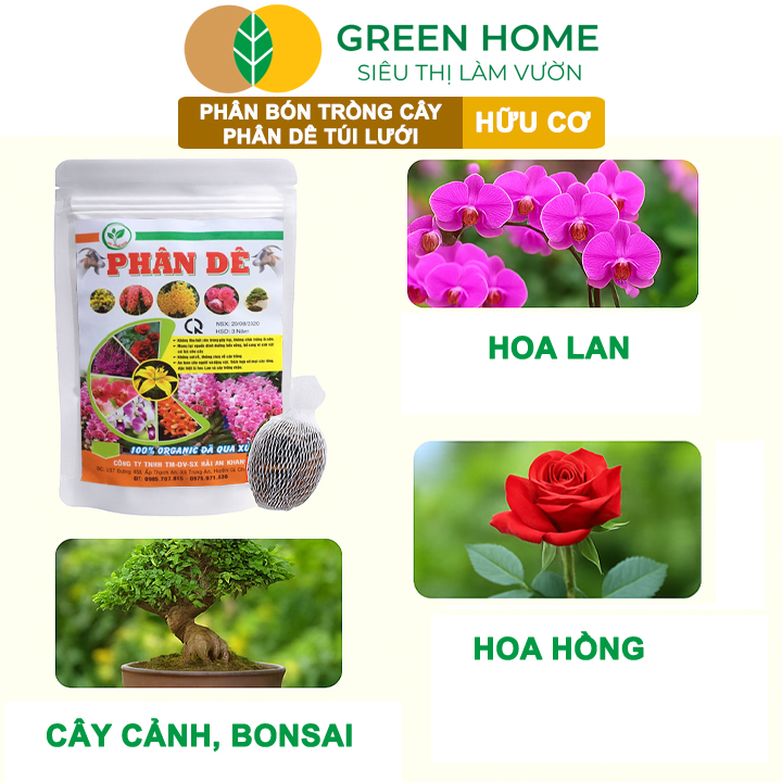 Phân Dê Trồng Lan Greenhome, Túi Lưới Dài 10cm, Đã Qua Xử Lý, Không Mùi, Kích Rễ Phong Lan, Hoa Đậm Màu Lâu Tàn